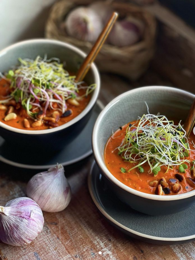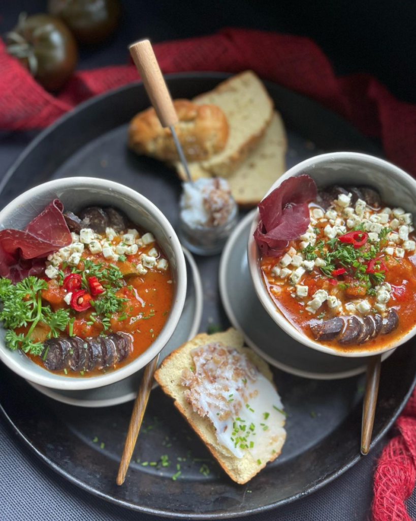 Składniki:▪️300g pomidorów koktajlowych▪️300g czerwonej papryki▪️2 średnie cukinie▪️3-4 ząbki czosnku▪️płatki chili (według upodobania)▪️suszone pomidory z czosnkiem (przyprawa kamis)▪️1 łyżeczka suszonego czosnku niedźwiedziego▪️1 łyżeczka suszonej bazylii▪️gałązki świeżego tymianku▪️1 łyżeczka suszonego oregano▪️1 łyżeczka suszonej cebuli▪️sól i pieprz do smaku▪️oliwa z oliwek▪️1l czystego bulionu…