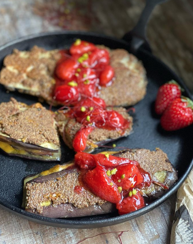 Bakłażany z pikantym sosem truskawkowym