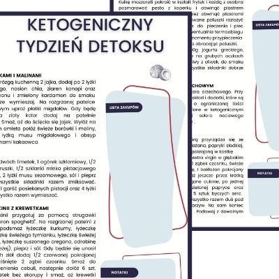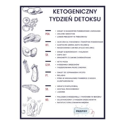 Jeśli chcesz na własnej skórze doświadczyć jak bez głodowych porcji i katorżniczych ćwiczeń osiągnąć wymarzoną sylwetkę, o której marzysz to sięgasz po właściwy produkt. Przez 7 dni stosowania naszego ketogenicznego tygodnia detoksu uwierzysz, że niemożliwe jest naprawdę osiągalne. Jadłospis zawiera propozycję 3 dań na każdy dzień tygodnia.